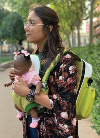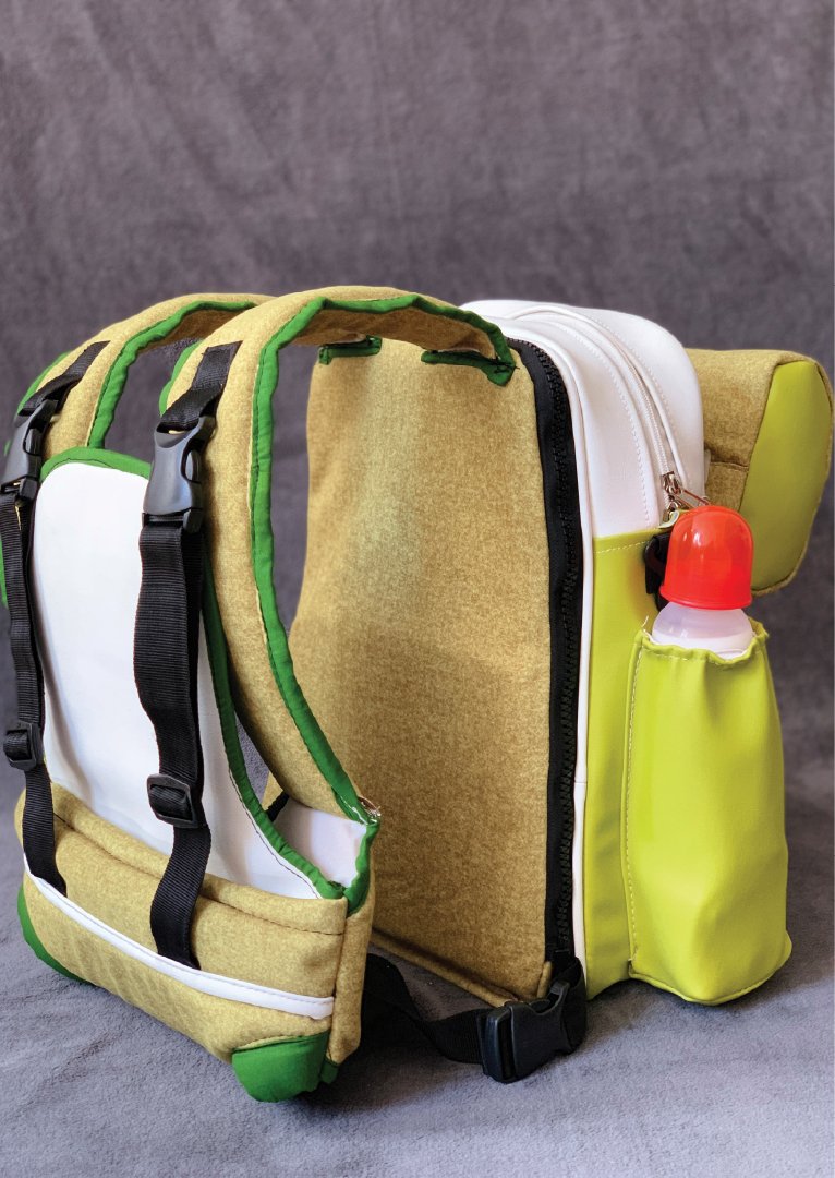 BBag is designed to tackle multiple problems. It has many small details that add up to the uniqueness of the bag. On the right hand side, there’s a bottle holder; A cushion is attached in the front that can be removed when to be used; In the bottom there is a compartment for the diaper changing mat that can be detached when you want to clean it; Adjustable straps are placed in front; The front & back part of the baby carrier are attached with an open adjustable straps that are held together by a 3 pin hook; and lastly, the carrier and the bag are attached together with a zip.